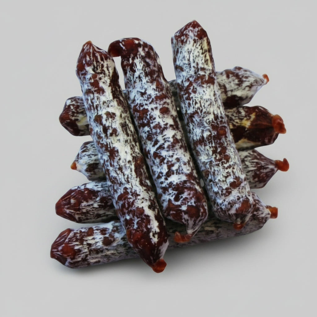 Délicatement séchées et enrobées d'un boyau en collagène, ces saucisses de la taille d'une bouchée sont parfaites pour les collations, les apéritifs, les pique-niques ou les plateaux de charcuterie. Leur taille compacte les rend pratiques, tandis que leur recette française authentique offre une expérience gastronomique satisfaisante.
