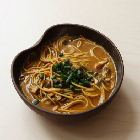 Repas prêt à cuisiner avec nouilles ramen biologiques, bouillon de miso rouge, protéines végétales, champignons, épices et laitue de mer cueillie à la main dans le golfe du Saint-Laurent.