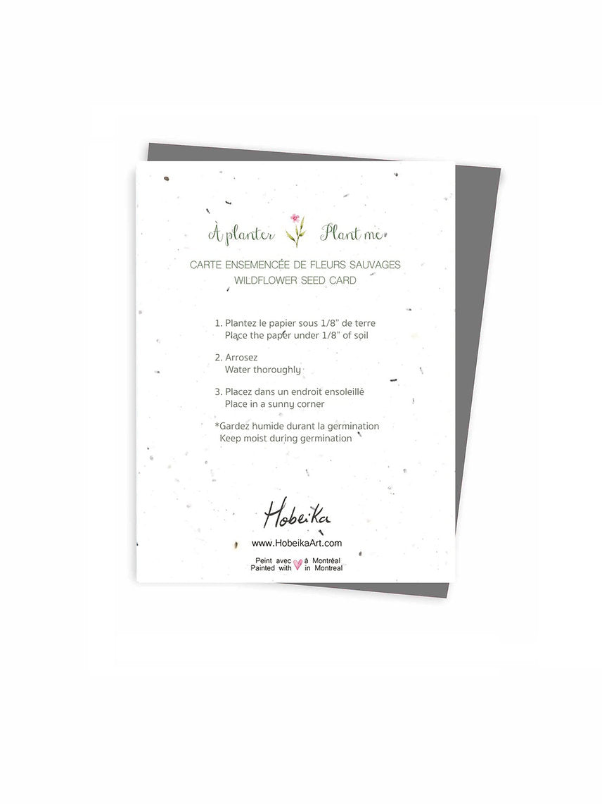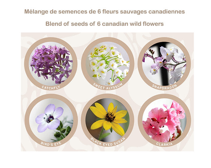 CARTE ENSEMENCÉE d'un magnifique mélange de 6 fleurs sauvages Canadiennes à planter (voir les photos): Silène, Alysson maritime, Muflier, Gilia tricolore, Rudbeckia et Clarkia
